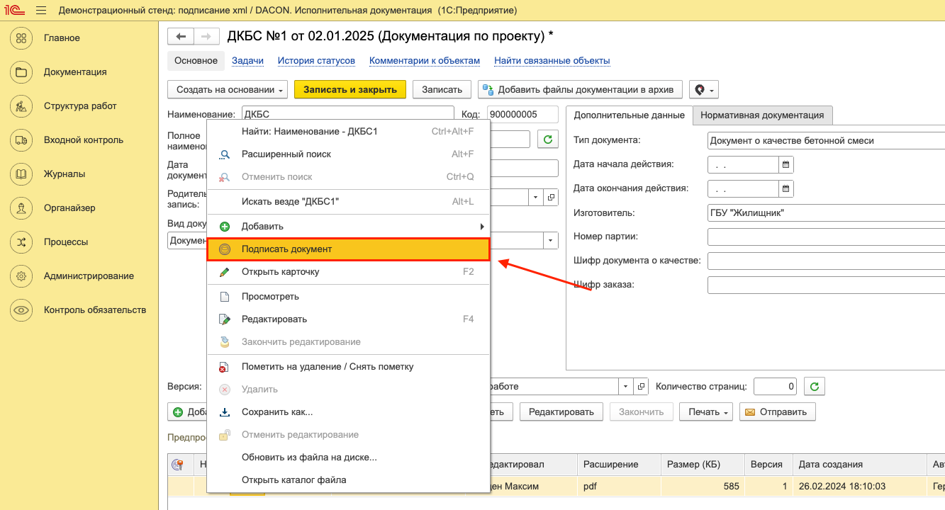 Подписание документов ЭП. Загруженные документы можно подписать электронной подписью, для этого можно воспользоваться 2 методами.
