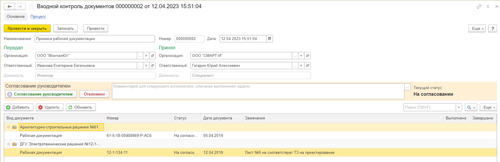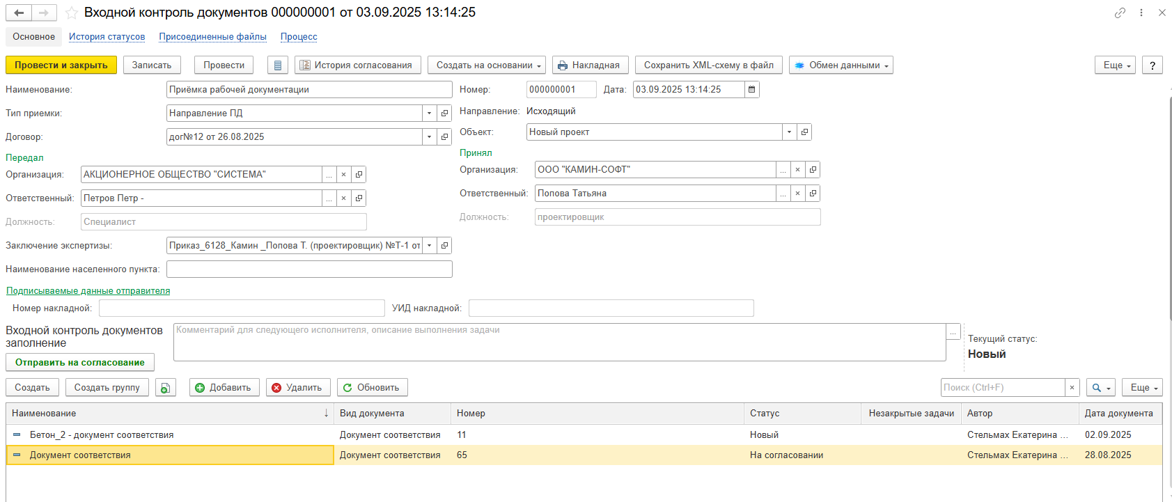 Рисунок 65 – Входной контроль документов с согласованием