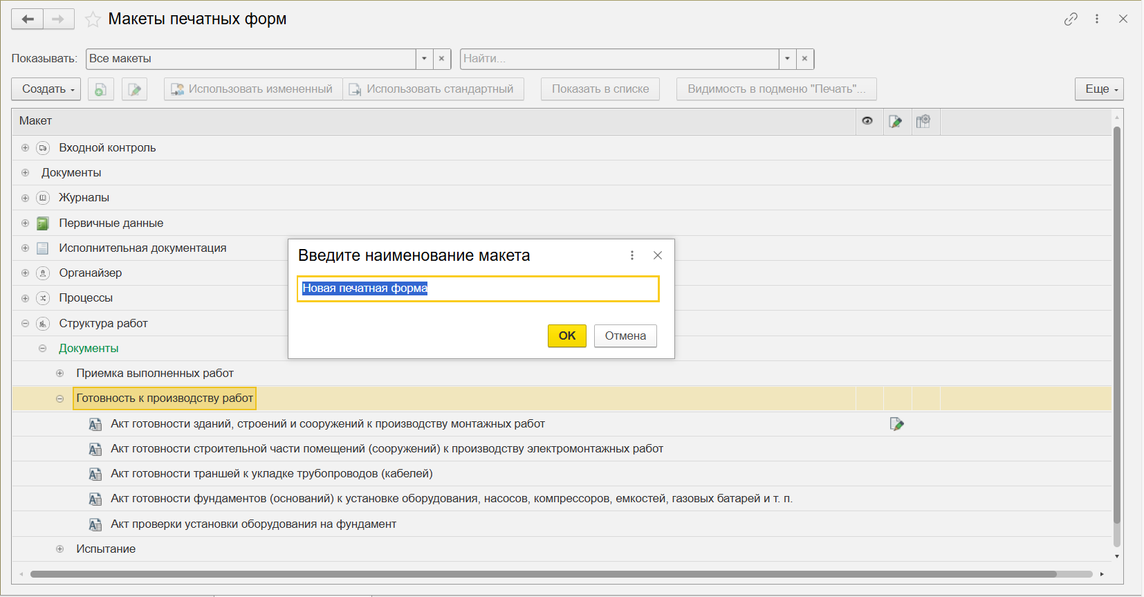 Ввести наименование макета и нажать кнопку «ОК» (Рисунок 119).