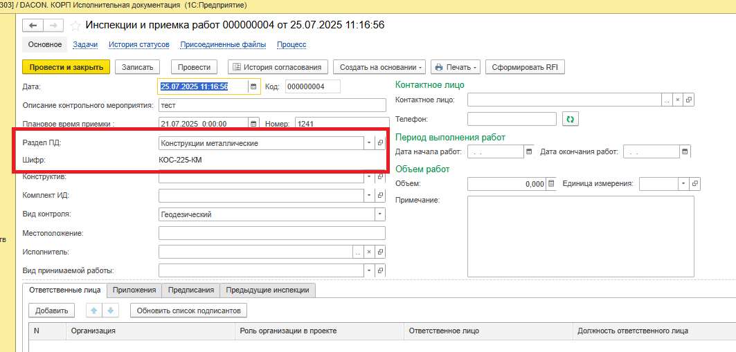 Рисунок 106 – Основные сведения об инспекции и приёмке работ