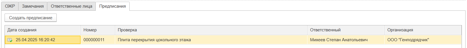 Рисунок 109 – Предписания по инспекции и приёмке работ