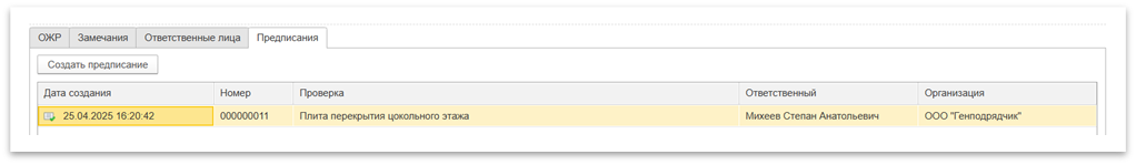 Рисунок 4 – Предписания по инспекции и приёмке работ