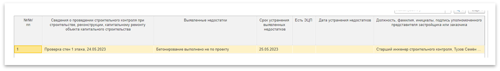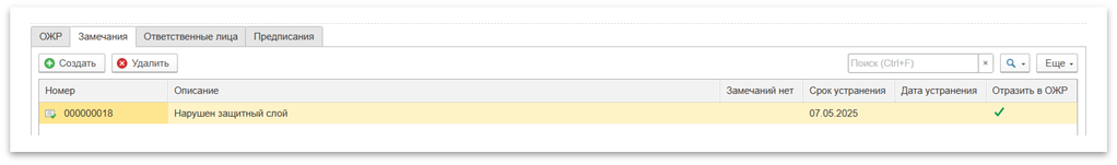 После выполнения задания ответственным пользователем и его принятия строительным контролем, в табличной части Замечания и соответствующем разделе ОЖР автоматически будет установлена дата устранения недостатков, соответствующая дате выполнения задания.