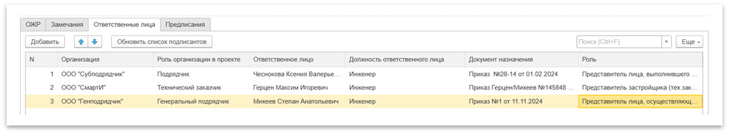 Рисунок 2 – Ответственные лица по инспекции и приёмке работ
