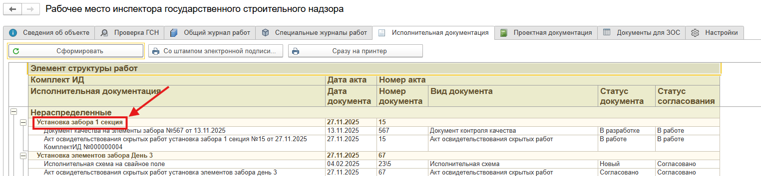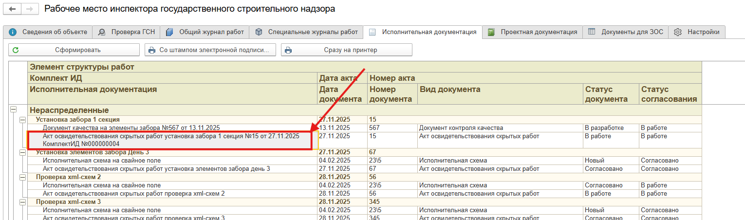 Если нам необходимо более предметно посмотреть какой-либо из комплектов исполнительной документации, мы должны выбрать его, нажать на него два раза левой кнопкой мыши.