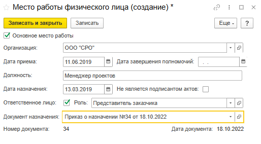 Рисунок 51 – Создание места работы физического лица