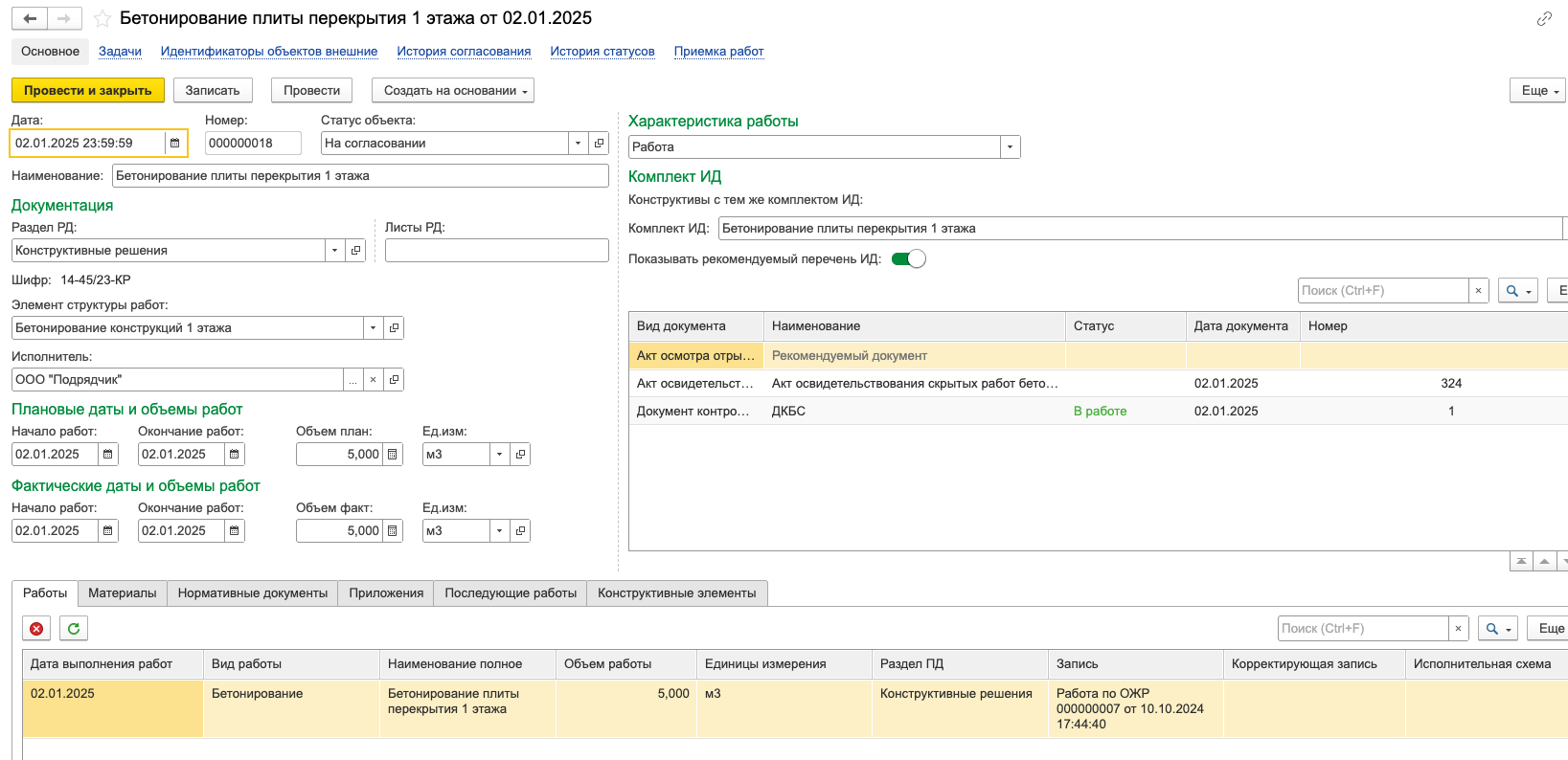 Примечание: для формирования актов в xml-формате конструктив обязательно должен иметь связь с записями работ ОЖР.