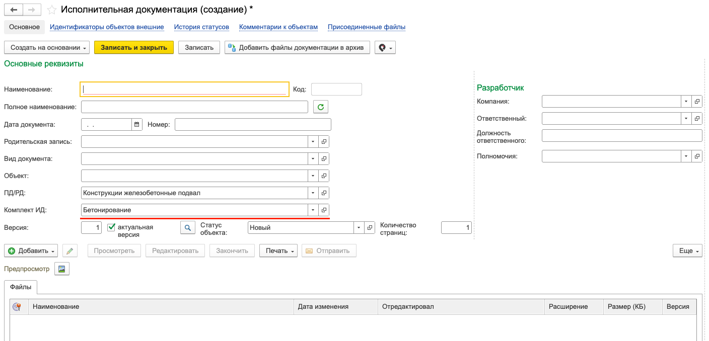 Если до этого был создан «Комплект ИД», его можно указать в соответствующем окне. В этом случае документ автоматически прикрепляется к указанному комплекту ИД.