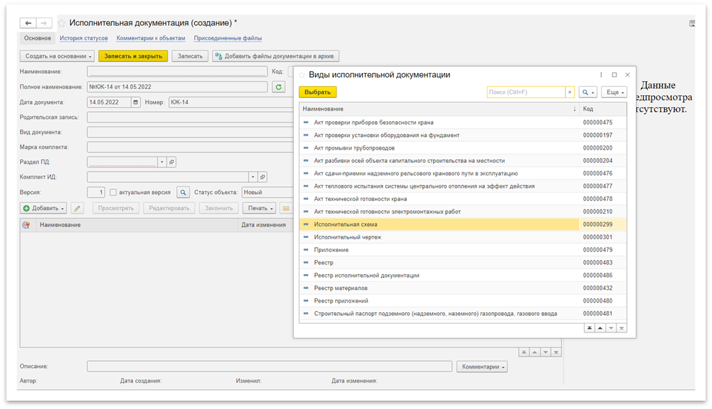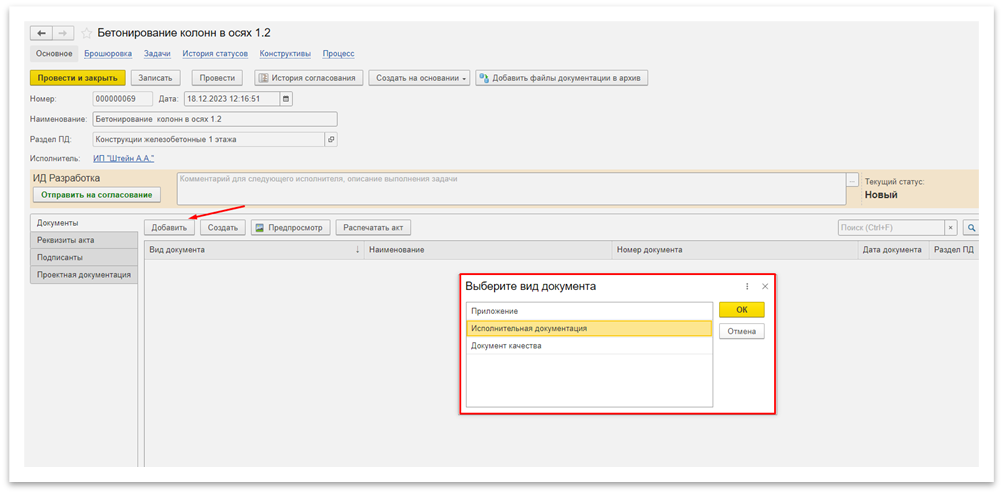 Рисунок 8 – Создание документа исполнительной документации