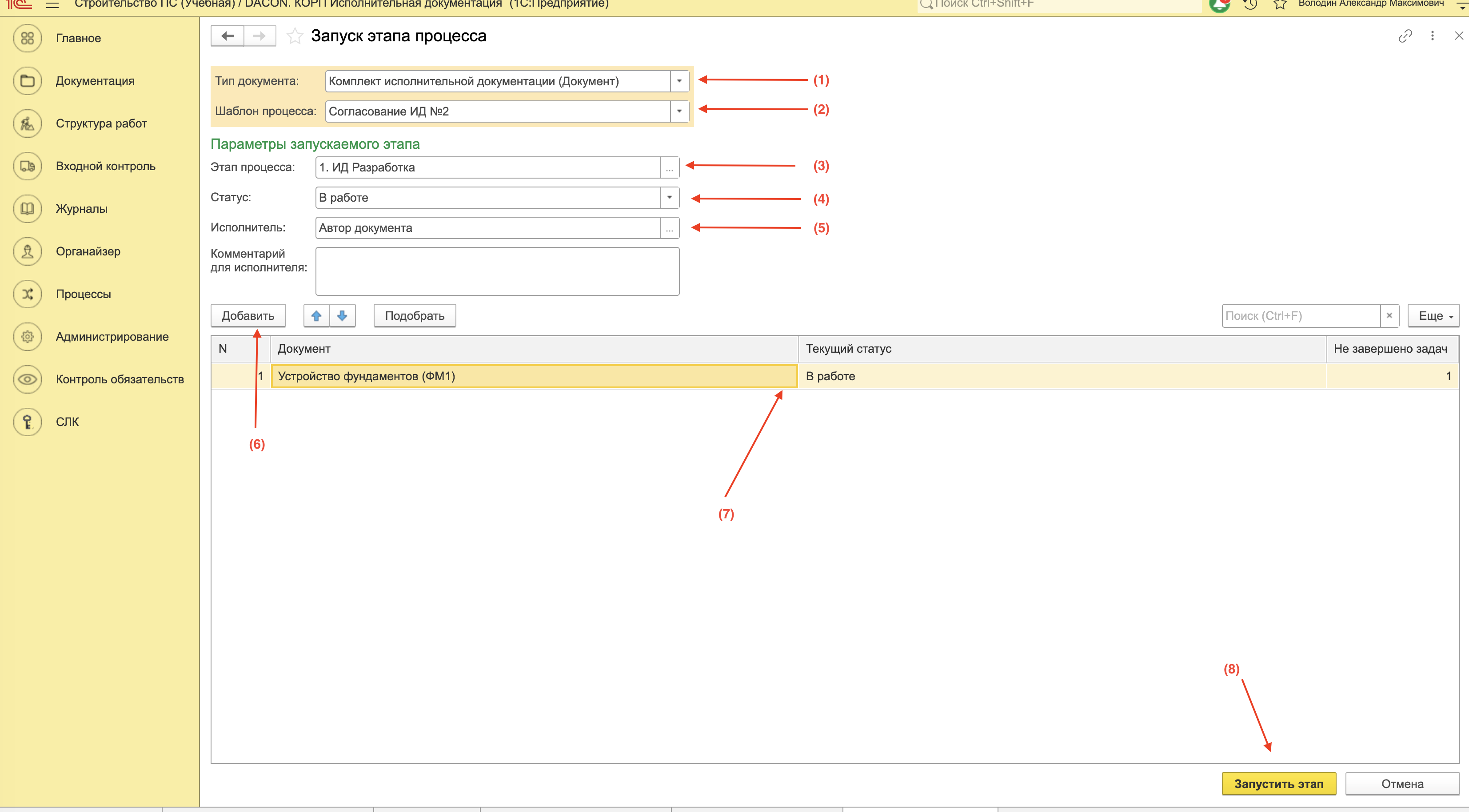 Далее в новом окне заполняем поля по перезапуску процесса согласования.