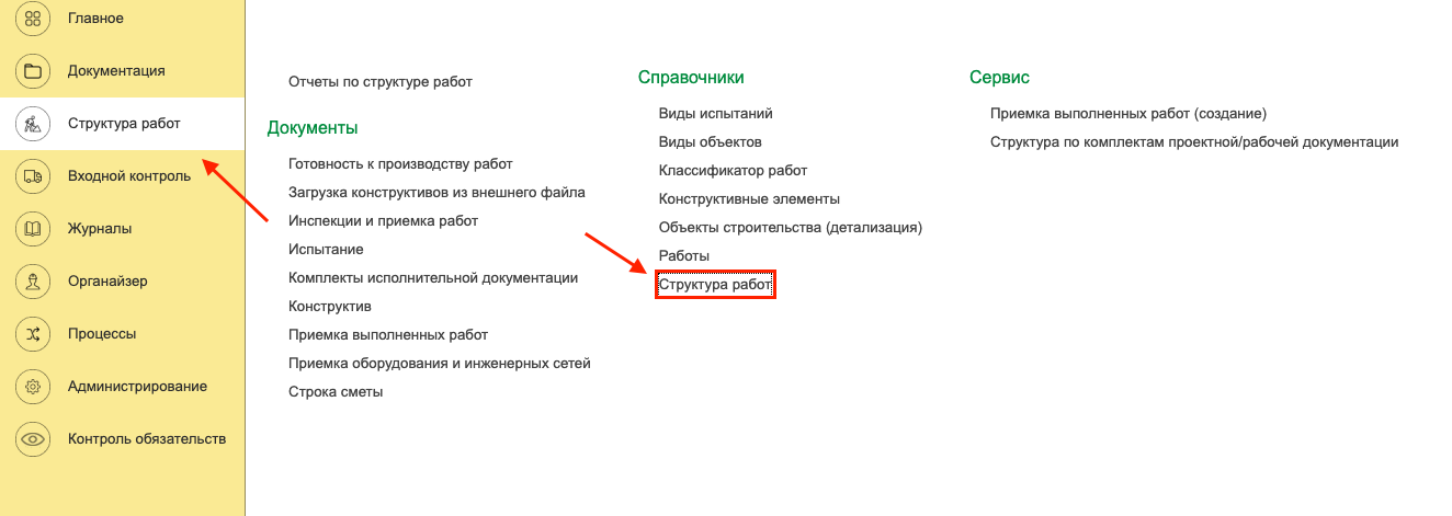 · нужно выбрать раздел проектной или рабочей документации, по которому будут выполняться работы;