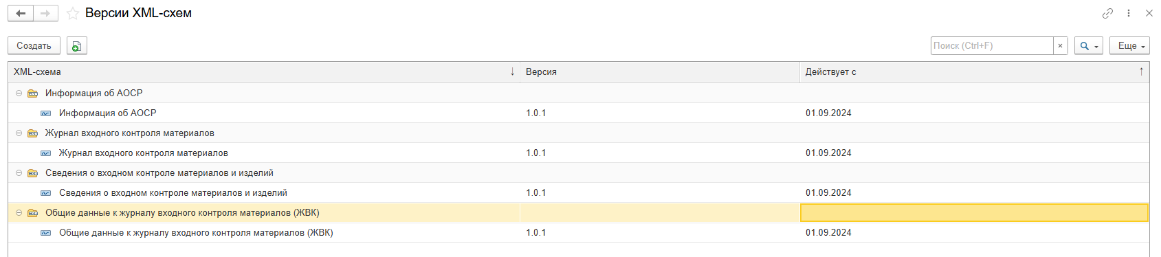 Рисунок 41 – Указание даты действия XML-схем