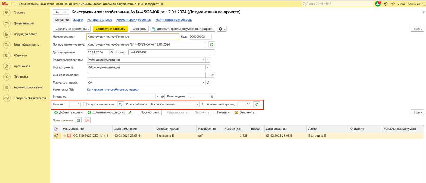 К комплекту может быть приложено несколько изменений (редакций) документов для удобства просмотра и сравнения изменений в проектной и рабочей документации. Версия и статус документа указываются в документе по проекту (Рисунок 69).