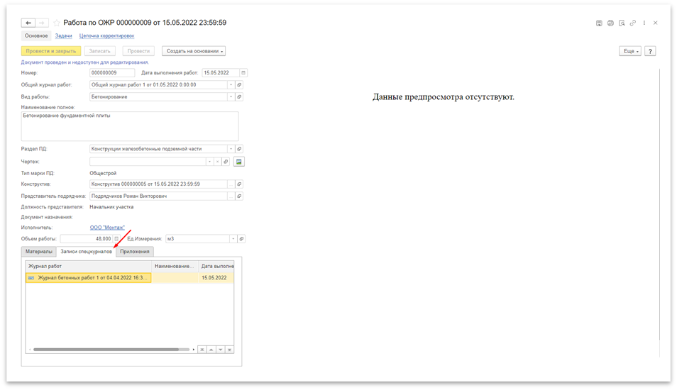 Рисунок 4 – Ссылка на запись спецжурнала в работе по ОЖР