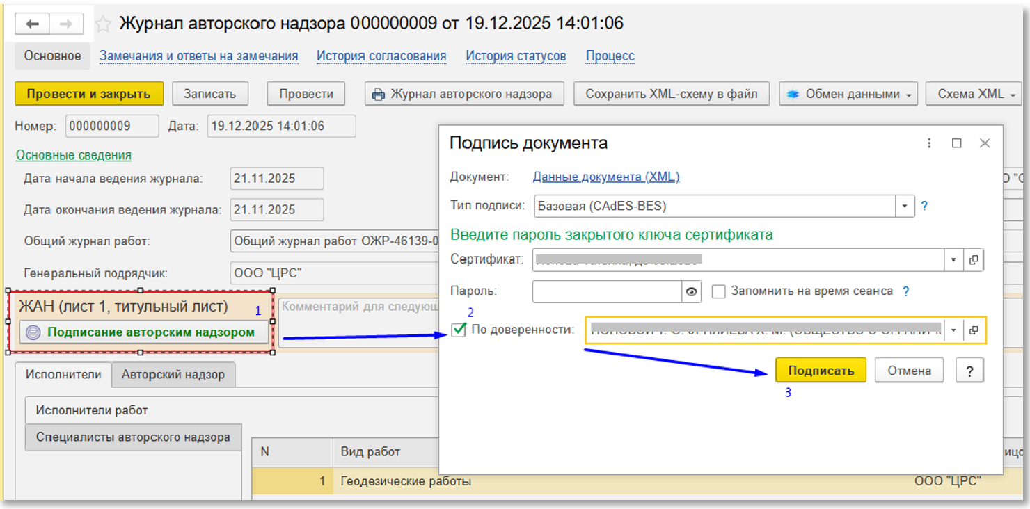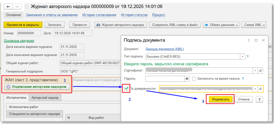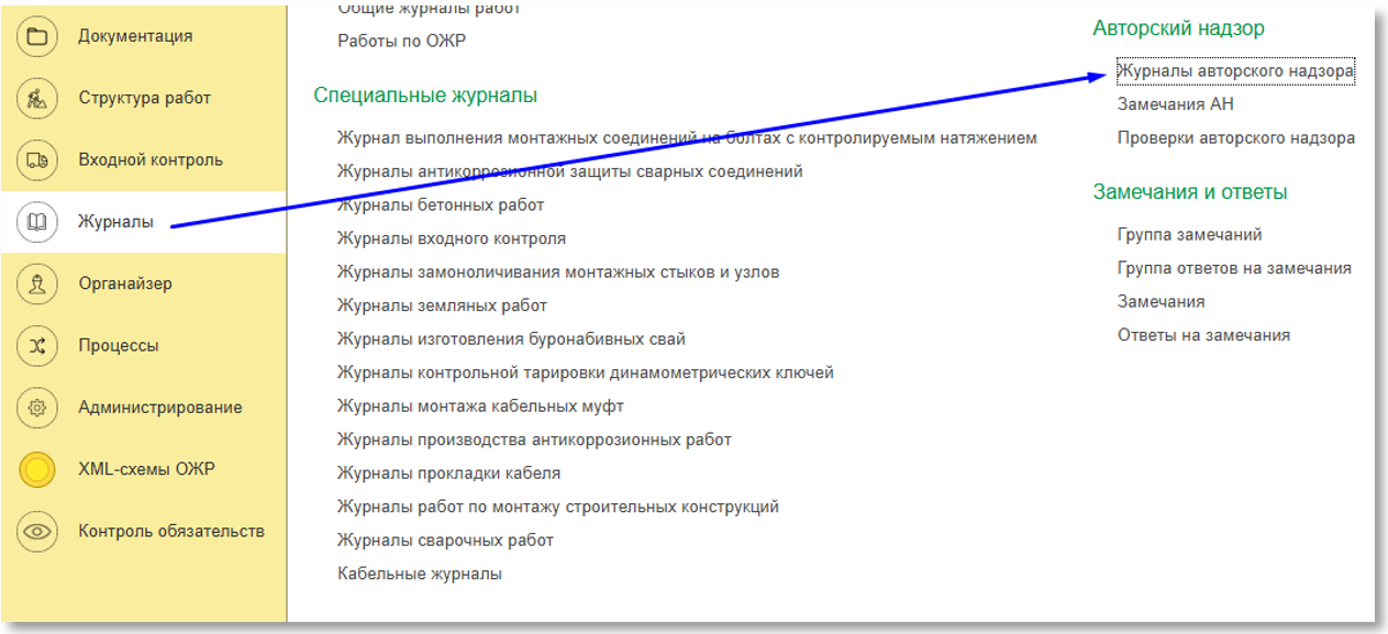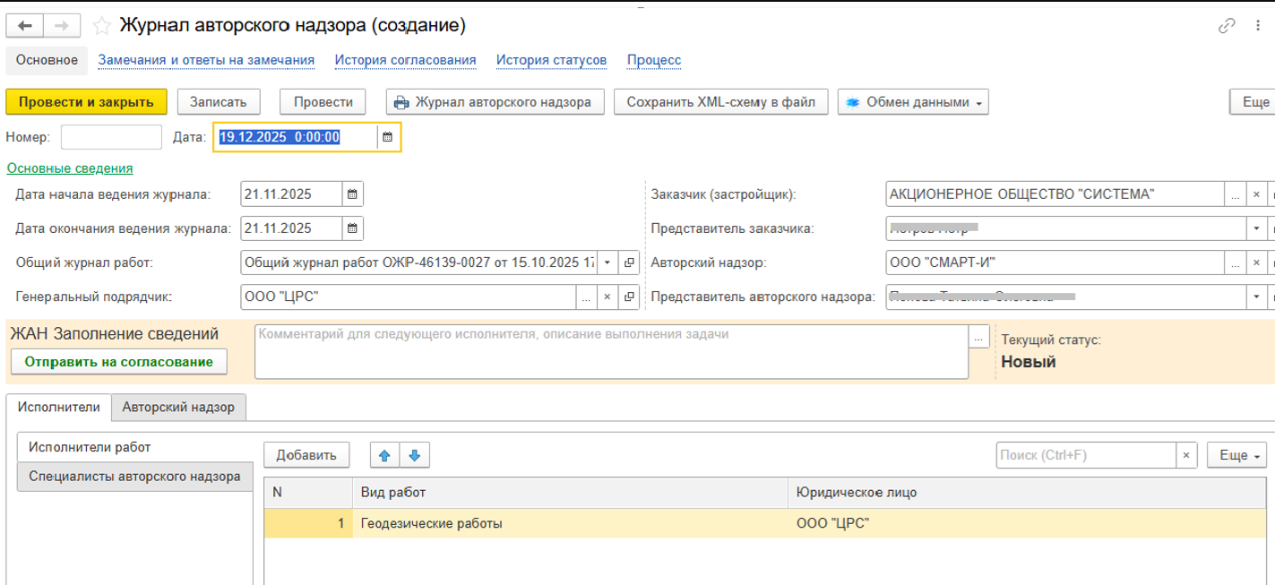 Формирование и регистрация журнала авторского надзора (ЖАН)