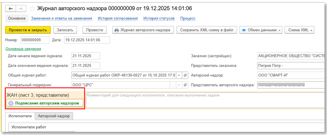 ЖАН создается и подписывается в Системе представителями Авторского надзора.