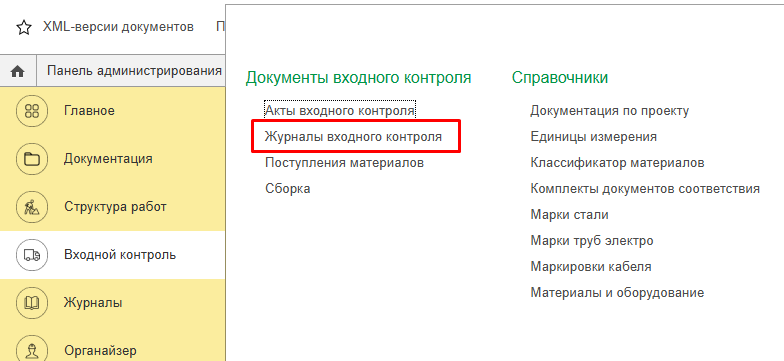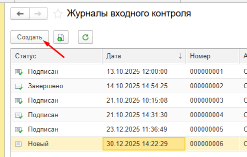 Раздел Входной контроль – Журналы входного контроля (Рис. №64) – Создать