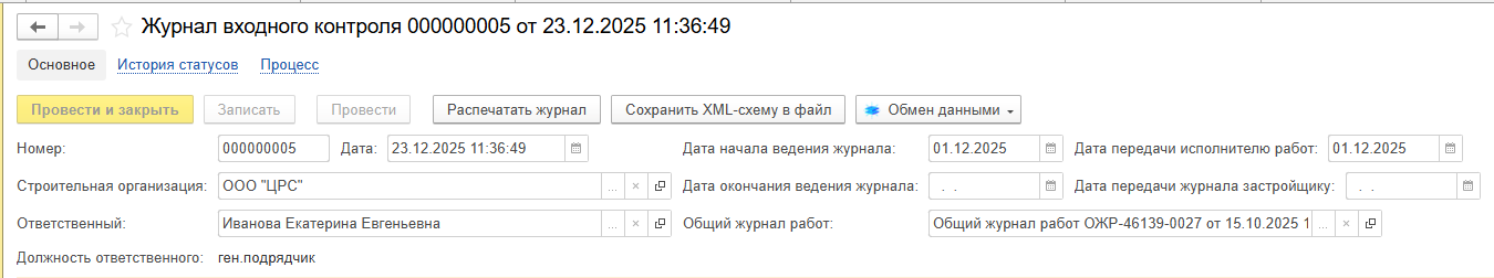 - Ответственный – представитель юридического лица, ответственного за ведение журнала.