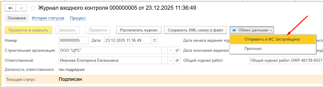 После отправки сведений о титульном листе ЖВК в ИС Застройщика никаких ответных сообщений от Застройщика не требуется, можно принимать материалы и вносить записи в ЖВК.