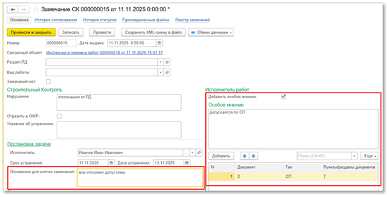 Рис. "Особое мнение по замечанию"