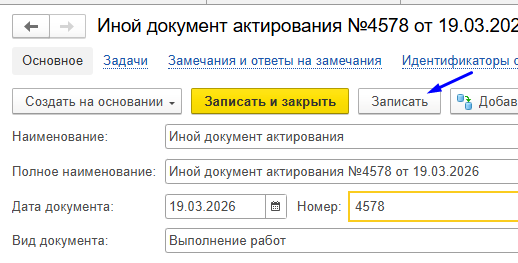 Для создания иного документа актирования необходимо выполнить следующие шаги: