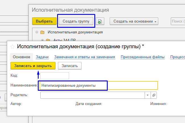 Рис. "Создание родительской записи для нетипизированных документов"