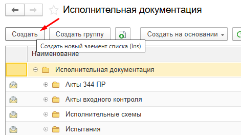 Шаг 1 - создать новый элемент списка "Исполнительная документация"