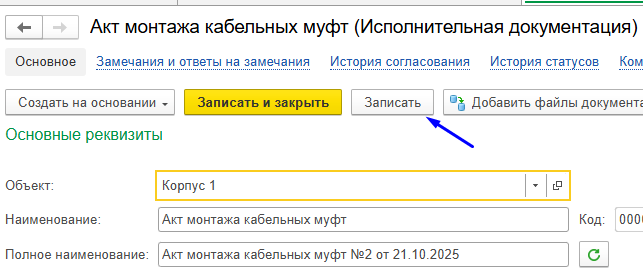 Шаг 3 - нажать на кнопку "Записать" на форме (см. рисунок ниже):