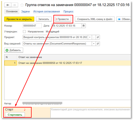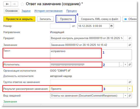 Рис. "Создание ответа на замечание"