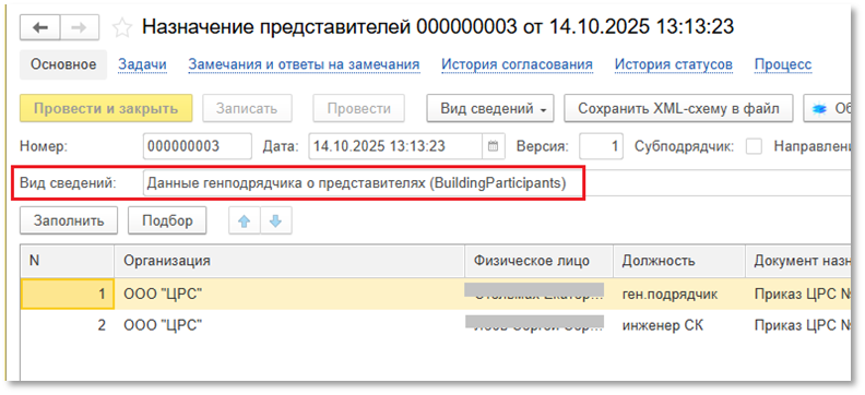 - При подаче данных о подрядчиках, документ «Назначение представителей» носит замещающий характер (т.е. каждая новая подача сведений не дополняет, а отменяет предыдущую).
