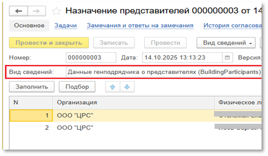 Важно! При подаче данных о подрядчиках, документ «Назначение представителей» носит замещающий характер (т.е. каждая новая подача сведений не дополняет, а отменяет предыдущую).