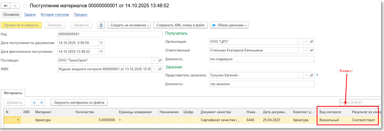 - указать результат входного контроля.