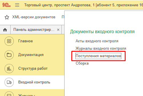 Регистрация поступления материалов и оборудования