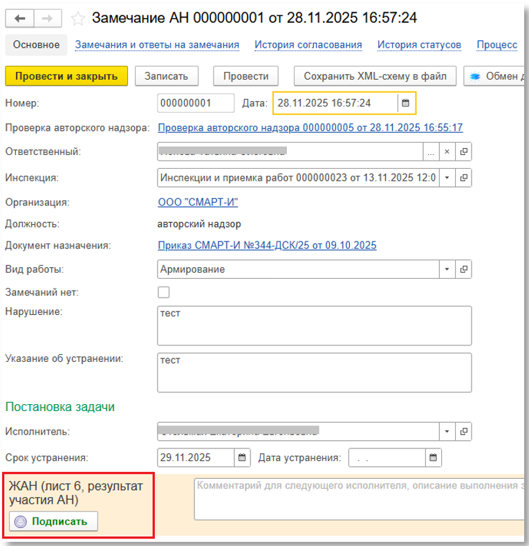 После согласования листа 5 ЖАН, необходимо направить лист 6. Учетный лист по результатам участия авторского надзора в освидетельствовании работ.
